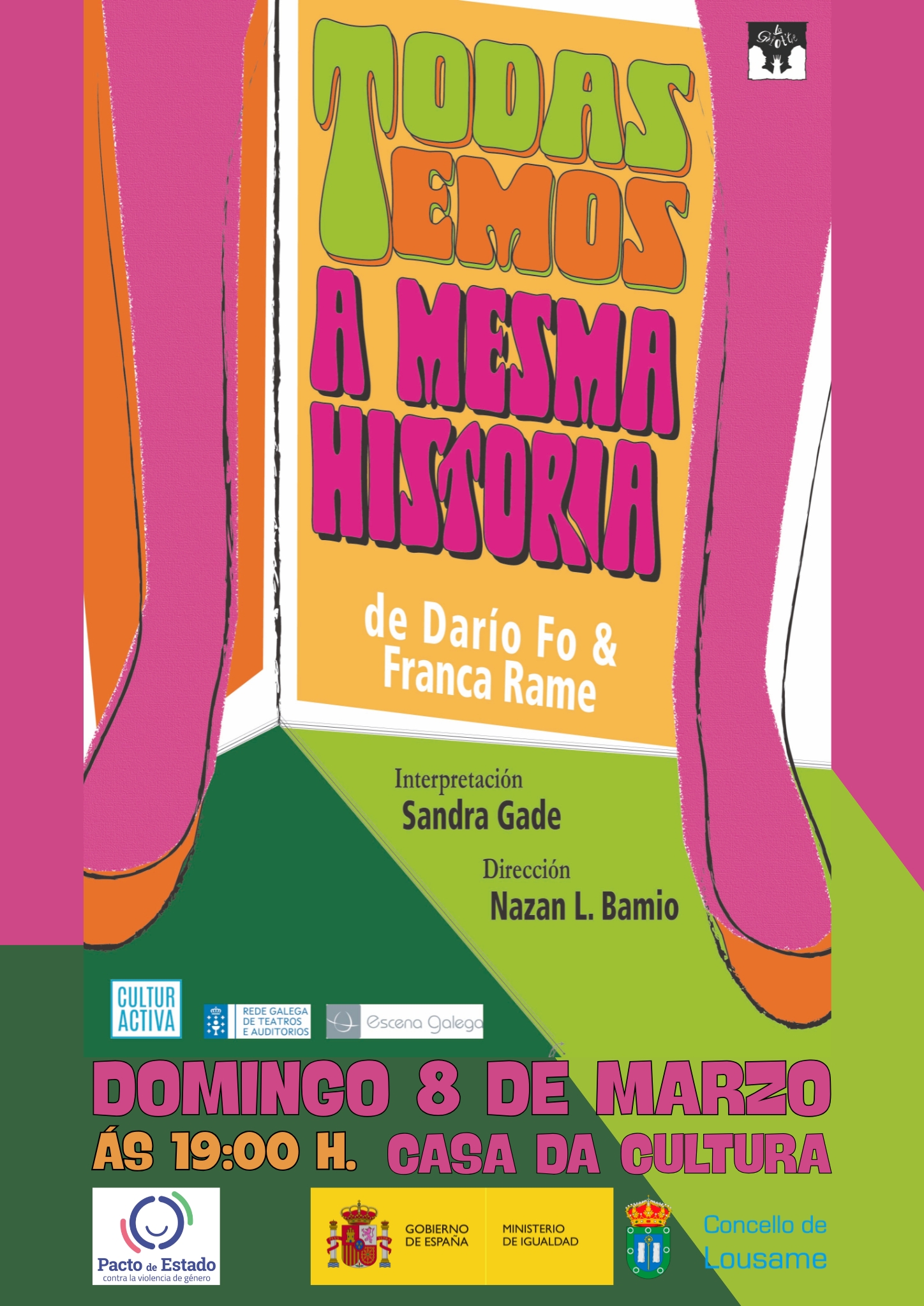 A compañía de teatro LaGriot’te visitará o domingo 8 de marzo, a Casa da Cultura co seu novo espectáculo: 𝐓𝐎𝐃𝐀𝐒 𝐓𝐄𝐌𝐎𝐒 𝐀 𝐌𝐄𝐒𝐌𝐀 𝐇𝐈𝐒𝐓𝐎𝐑𝐈𝐀