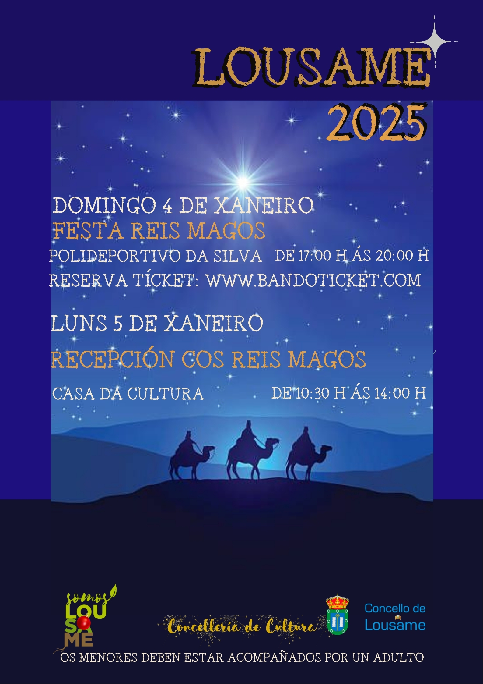 Xa están dispoñibles en Bandoticket as entradas para o Festival (domingo 4 ) e a Recepción dos Reis Magos ( luns 5 de Xaneiro):Festival (domingo 4 xaneiro)
